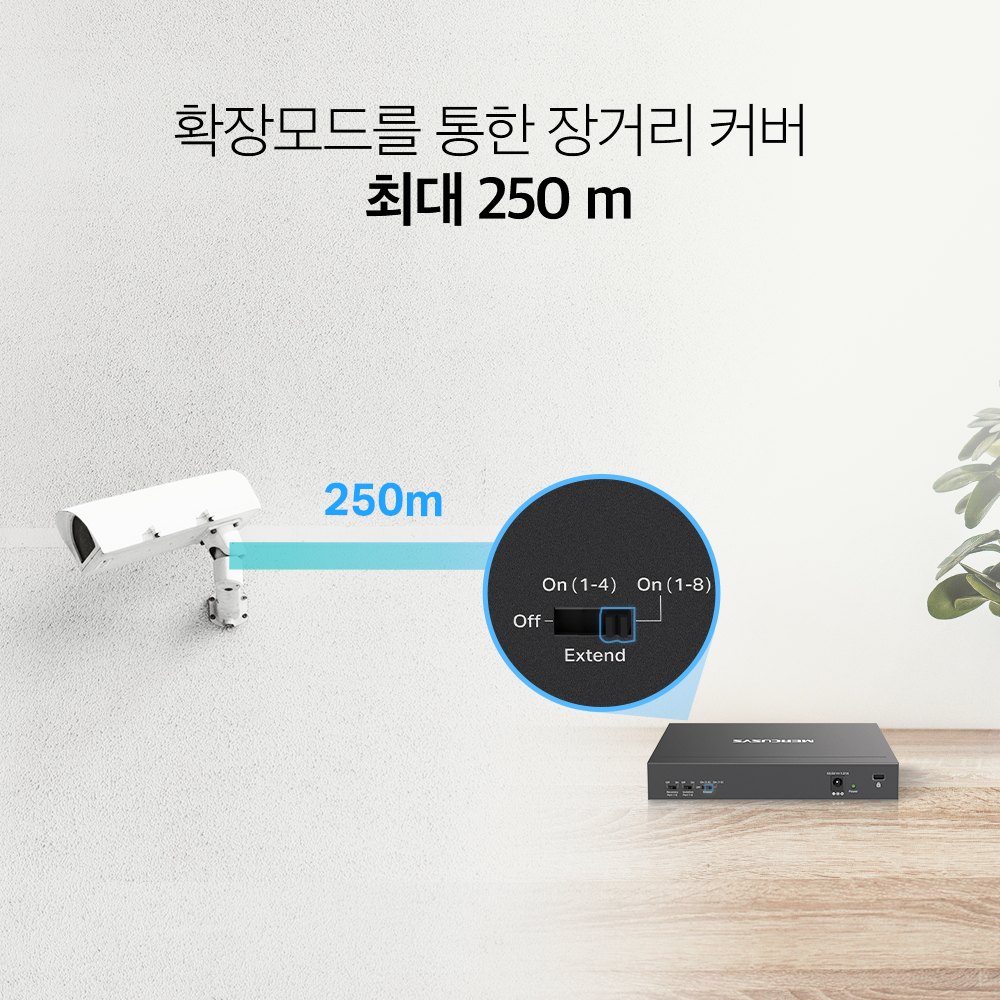 - 다양한 설치 방법을 지원하는 컴팩트 디자인: 똑바로 세우거나 뒤집어도 쓸 수 있고, 책상 거치, 벽면 설치, 천장 설치, 기둥 설치를 지원합니다.